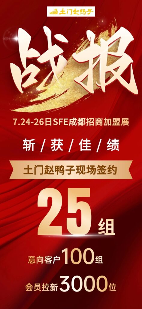 此次土門趙鴨子在 SFE 第七屆成都國(guó)際連鎖加盟展覽會(huì)上的出色表現(xiàn),標(biāo)志著土門趙鴨子在品牌建設(shè)和市場(chǎng)拓展方面邁出了重要一步。進(jìn)一步提升了品牌知名度與影響力,彰顯了其在鹵味市場(chǎng)的強(qiáng)大競(jìng)爭(zhēng)力。