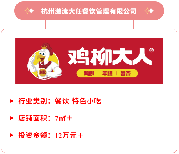 雞柳大人以【中式傳統(tǒng)小吃】為品牌定位,起源于浙江紹興嵊州,傳承20年的老手藝,秉承著更好的食材、更好的味道、更好的服務(wù)、更好的產(chǎn)品為每一位消費者