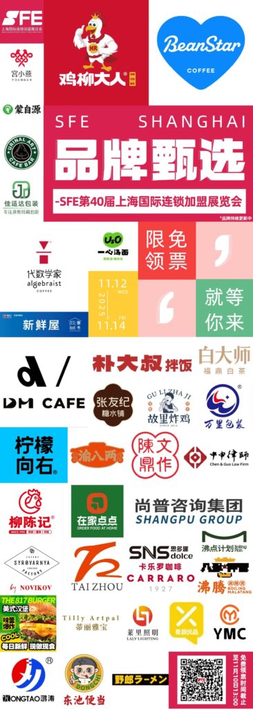 在SFE第40屆上海國際連鎖加盟展上,除了上述品牌外,還邀請:雞柳大人、柳陳記、THE 817 BURGER、故里炸雞、一心湯面、野郎ラ-メン、樸大叔拌飯、渝八兩、Cheesefarm、蒙自源、東池便當、代數(shù)學(xué)家咖啡、比星咖啡、DM CAFE、陳文鼎、檸檬向右、宮小燕、張友紀糖水鋪、新鮮屋、泉藝術(shù)、蒂麗雅寶、白大師、鴻濤包裝、佳適達、萊里照明、萬里包裝、梵花飾景、閃店盒子設(shè)計、藝點文化、中申律師、泰舟、尚普咨詢、街知科技、沸點計劃火鍋、八珍拌飯、沸騰麻辣燙、思多趣、卡樂羅、衣麥承……等品牌聯(lián)袂打造行業(yè)盛會。