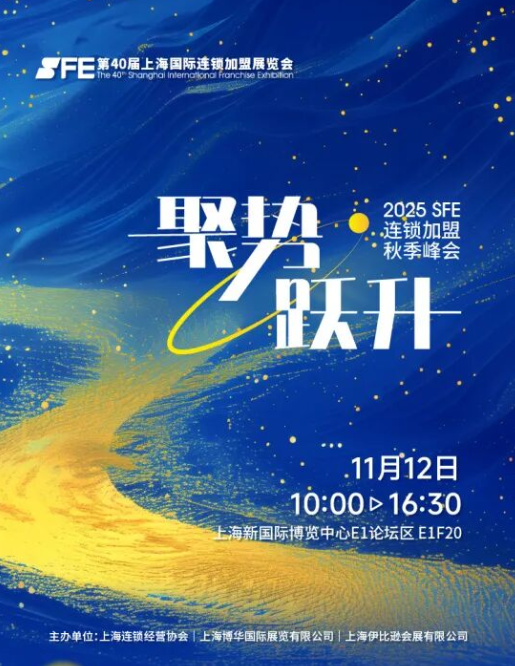 展會同期還將舉辦一系列論壇活動。11月12日,由上海連鎖經(jīng)營協(xié)會、上海博華國際展覽有限公司和上海伊比遜會展有限公司傾力打造的“聚勢·躍升——2025SFE連鎖加盟秋季峰會”將盛大啟幕。