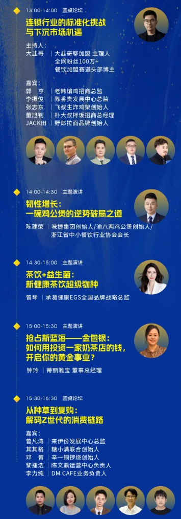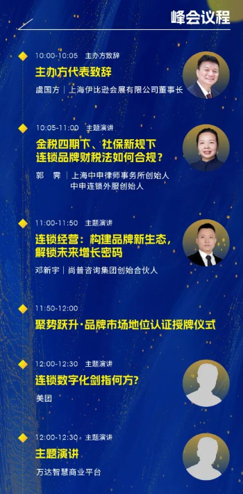 本次峰會聚焦連鎖標準化、Z世代、稅法、新增長等熱點話題,緊密圍繞小吃快餐、茶飲、休食、珠寶零售等細分賽道,特邀連鎖行業(yè)領(lǐng)軍企業(yè)高層、品牌咨詢代表及數(shù)字化專家,通過多維主題的深度對話,助力連鎖加盟行業(yè)實現(xiàn)從“規(guī)模增長”到“質(zhì)量增長”的戰(zhàn)略躍遷。